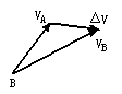 把vA,vB平移到一个三角形中,将Δv=vB-vA转化为vB=vA+Δv,运用三角形定则画矢量图,解题易错点是容易在矢量图中把Δv的方向画反. |