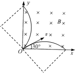 如图所示,在第一象限内有垂直纸面向里的匀强磁场,一对质量和电荷量均相等的正、负离子(不计重力)分别以相同速度沿与x轴成30°角从原点射入磁场,则正、负离子在磁场中![]()