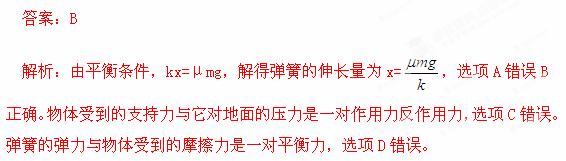 (2013年甘肃省五市联考)如图所示,放在水平地面上的质量为m的物体,与地面的动摩擦因数为μ,在劲度系数为k的轻弹簧作用下沿地面做匀速直线运动。弹簧没有超出弹性限度,则 ( )