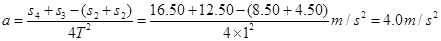 (2)已知前四段位移,由逐差法求出加速度的大小: