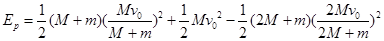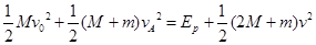 在光滑的水平面上,有两个质量都是M的小车A和B,两车间用轻弹簧相连,它们以速度v0向右匀速运动,有一质量为m的铁钉从高处自由落下,正好嵌入A车,在两车继续向前运动的过程中,弹簧的弹性势能的最大值是多少?