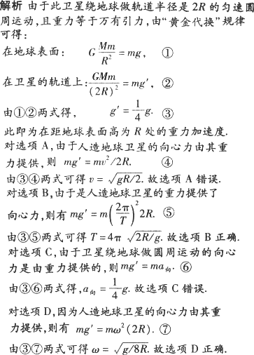 在圆周轨道上运行的质量为m的人造地球卫星,它到地面的距离等于地球半径R,设地球表面上的重力加速度为g,则