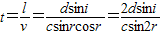 【答案】分析:由光路图可知折射角,由折射定律可知两光的折射率的大小关系;则可知频率、波长、波速及临界角的大小时关系;由传播速度可求得光的传播时间.