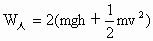 如图所示,质量均为m的人和铁块静止在空中,当人拉质量不计的钢体细绳加速爬升了h高度时,人的速度为v,不计摩擦,在此过程中人所做的功为________.