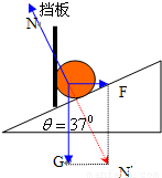【答案】分析:小球对挡板和对斜面的压力不好求,我们可以求挡板和斜面对小球的支持力,利用牛顿第三定律求解这两个力,小球静止,对小球受力分析后应用平衡条件列式求解.
