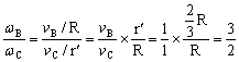 ∵ B、C用皮带传动, ∴ vB∶vC=1∶1. 又∵ vB=wBR,vC=wCr′. ∴ ∴ vAvB=wAr/wBR= vA/vC=wAr/wCr′=
