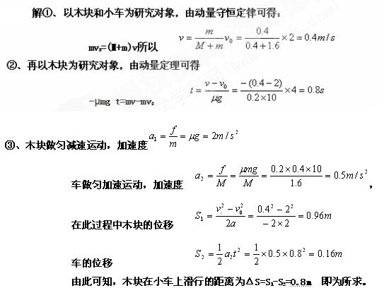 ③ 从木块滑上小车到它们处于相对静止木块在小车上滑行的距离。![]()