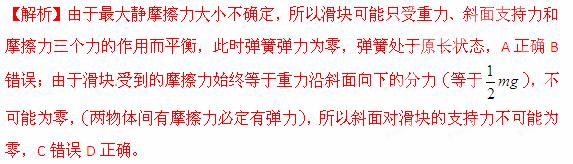 (2013山东省枣庄市质检)如图所示,质量为m的滑块静止置于倾角为30°的粗糙斜面上,一根轻弹簧一端固定在竖直墙上的P点,另一端系在滑块上,弹簧与竖直方向的夹角为30°,则