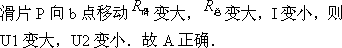 如图所示的电路中,电源的电动势为ε,内阻为r.当可变电阻的滑片P向b点移动时,电压表V1的读数U1与电压表V2的读数U2的变化情况是