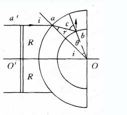 的半球形空心球壳,一束平行光射向此半球的外表面,与中心对称轴