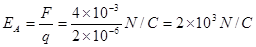 C.A点的电场强度大小为2×103N/C D.A点的电势比B点的电势高