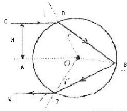 PQ与入射光线DC平行,则∠POA=∠COA=i,i=60°,折射角r=