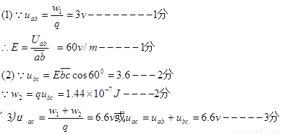 (1)60V/m(2)1.44×10-7J(3)6.6V