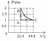 图甲为1mol氢气状态变化过程的V-T图象,己知状态A的参量为pA=1atm,TA=273K,VA=22.4×10-3m3,取1atm=105Pa,在图乙中画出与甲图对应的状态变化过程的p-V图,写出计算过程并标明A、B、C的位置。