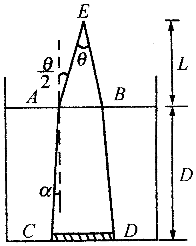(2)如将水倒出一半使水深度变为D/2,再在原位置观测时,硬币的视角等于多少?