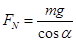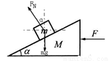 如图所示,在光滑水平面上有一质量为M的斜劈,其斜面倾角为α,一质量为m的物体放在其光滑斜面上,现用一水平力F推斜劈,恰使物体m与斜劈间无相对滑动,则斜劈对物块m的弹力大小为:( )