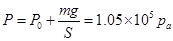 ,一定质量的气体被质量为2.0kg的光滑活塞封闭在气缸内,其压强为多少?(大气压强取1.01*