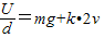 解答:解:若两金属板间的电压为零,一段时间后油滴以速率v匀速下降,根据平衡有:mg=kv,