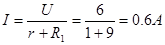 内阻r及R1两端电压为:U=E-U2=12-6=6V