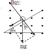的光滑绝缘斜面上由静止下滑,整个斜面置于方向水平向外的匀强磁场中,磁感应强度为B,如图所示,若带电小球下滑后某时刻对斜面的压力恰好为零,求小球从开始至此过程中沿斜面下滑的距离。![]()