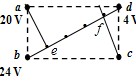 a、b、c、d是匀强电场中的四个点,它们正好是一个矩形的四个顶点.电场线与矩形所在平面平行。已知a点的电势为20 V,b点的电势为24 V,d点的电势为4 V,如图,由此可知c点的电势为 ( )