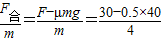 质量为4kg的物体静止于水平面上,物体与水平面间的动摩擦因数为0.5,物体在大小为30N、方向为水平方向的拉力F作用下,从静止开始沿水平面做匀加速运动.求:(取g=10m/s2)?(1)物体的加速度是多大?