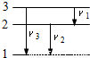 用光子能量为E的单色光照射容器中处于基态的一群氢原子.停止照射后,发现该容器内的氢能够释放出三种不同频率的光子,它们的频率由低到高依次为ν1、ν2、ν3,且ν2恰好能使某种金属A发生光电效应.由此可知( )A.单色光的光子能量E=hν1
