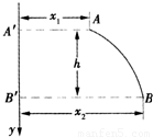 某同学做平抛实验时,只在纸上记下重垂线y方向,未在纸上记下斜槽末端位置,并只描出如图所示的一段平抛运动曲线,现在曲线上取A、B两点,用刻度尺分别量出到y的距离,AA′=x1,BB′=x2,以及AB的竖直距离h,从而求出小球被抛出时的初速度v为