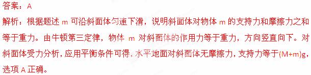 013安徽省江南十校联考)如图所示,物体m放在质量M的斜面体上,m可沿斜面体匀速下滑。现用一沿斜面向下的力F推物体,使其沿斜面向下做匀加速运动,则水平地面对斜面体