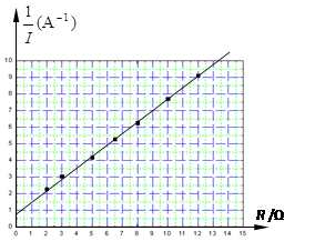 坐标系中标出了该同学所测的实验数据,作出这些数据点的拟合直线,并读得该直线的截距为________A-1,求得其斜率为________V-1;