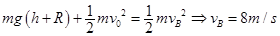 =4m/s的初速度竖直向下抛出一质量m="2" kg的小球(小球可视为质点),小球刚好从A点进入半圆轨道.若不计空气阻力,重力加速度g取10 m/s2. 求:![]()