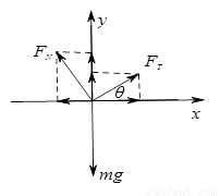 试题分析:选小球为研究对象,进行受力分析,受力情况如下图,建立如图所示的坐标系,由牛顿第二定律可得,