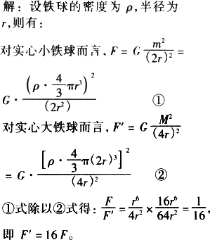 注意在铁球半径变为原来的二倍时,不仅质量变大,而且两球心间距也变大了. |