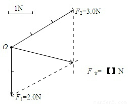 (2)图为另一同学根据自己的实验数据画出的两个分力F1、F2的图示,请在图中作出这两个分力的合力F合(保留作图痕迹),并在图中空格处填写F合的大小______.