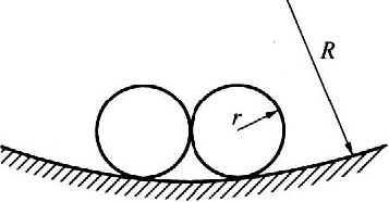 如图所示,两个重都为G、半径都为r的光滑均匀小圆柱,靠放在半径为R(R>2r)的弧形凹面内,处于静止状态.试求凹面对小圆柱的弹力及小圆柱相互间的弹力大小.【10】