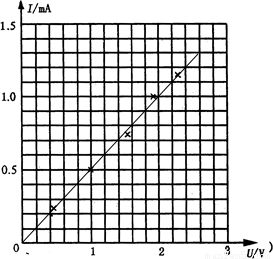 在用伏安法测电阻的实验中,测得各组数据用小叉标于坐标图上,如图所示.(1)请根据图中所记录的各点,描出I-U图线: