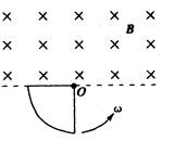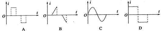 图中的虚线上方空间有垂直线框平面的匀强磁场,直角扇形导体线框绕垂直于线框平面的轴O以角速度ω匀速转动。设线框中感应电流方向以逆时针为正方向,那么在下图中能正确描述线框从图所示位置开始转动一周的过程中,线框内感应电流随时间变化情况的是 ( )