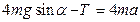 ⑵物体A刚刚离开地面时,以B为研究对象,物体B受到重力mg、弹簧的弹力kxA、细线的拉力T三个力的作用,设物体B的加速度为a,根据牛顿第二定律,对B有: