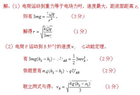 求:(1)电荷P运动过程中速度最大处与底部点电荷距离;