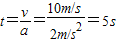 解答:解:物体做匀减速直线运动,当速度减速为零时所需时间为: