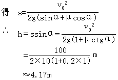 解:(1)设沿斜面滑行的最大距离为s, 高度为h, 由动能定理