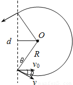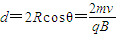 (2)带电粒子射入磁场后的轨迹如右图所示.设粒子射入磁场时的速度为v2,v2与v的夹角为θ,则