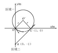 一次经x轴进入区域一,经过一段时间,从坐标原点O再次回到区域二.