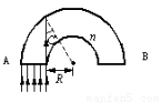 主截面是边长为d的正方形的棱柱,折射率为n,将其弯成半圆形(如图20-26所示).要使A端垂直入射的光线全部从B端射出,求所弯半圆形的最小内半径R的值.