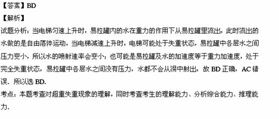 ijͬѧÓÃÒ»¸ö¿ÕµÄ¡°Ò×À¹Þ¡±×öʵÑ飬ËûÔÚ¿¿½ü¹Þµ×µÄ²àÃæ´òÒ»¸öС¶´£¬ÓÃÊÖÖ¸¶Âס¶´¿Ú£¬Ïò¡°Ò×À¹Þ¡±ÀïÃæ×¢ÂúË®£¬ÔÙ°ÑËüÐü¹ÒÔÚµçÌݵÄÌ컨°åÉÏ£»µ±µçÌÝÔÈËÙÉÏÉýʱ£¬ËûÒÆ¿ªÊÖÖ¸£¬Ë®¾Í´Ó¶´¿ÚÅçÉä³öÀ´,ÔÚˮδÁ÷Íê֮ǰ,µçÌÝ¿ªÊ¼¼õËÙÉÏÉý.¹ØÓÚµçÌݼõËÙÉÏÉýǰ¡¢ºóµÄÁ½¸ö˲¼äË®µÄÅçÉäÇé¿ö,ÏÂÁÐ˵·¨ÖпÉÄÜÕýÈ·µÄÊÇ( )