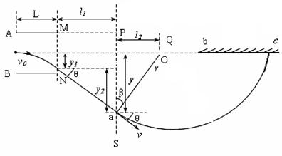 带电粒子进入点电荷的电场时,速度与点电荷对粒子的库仑力垂直,由题的描述:粒子穿过界面PS最后垂直打在荧光屏bc上,由此可以做出判断:该带电粒子在穿过界面PS后将绕点电荷Q作匀速圆周运动。