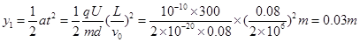 试题解析:(1)带电粒子穿过界面MN时偏离中心线的距离,即侧向位移: