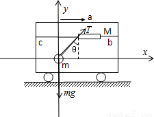 【答案】分析:先对小球受力分析,根据牛顿第二定律列式分析;再对小球和滑块整体受力分析,根据牛顿第二定律列式求解.