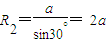 设带电粒子射入方向与y轴夹角30°时的轨道半径为R2,由几何关系有: