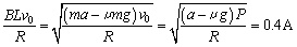 设磁场的磁感强度为B,导轨间距为L,金属杆质量为m,当水平冲量作用完毕时, 杆的受力如图,由牛顿运动定律得: BIL+mmg=ma ① 又I= 故B× BL= 回路此时的电流: I=